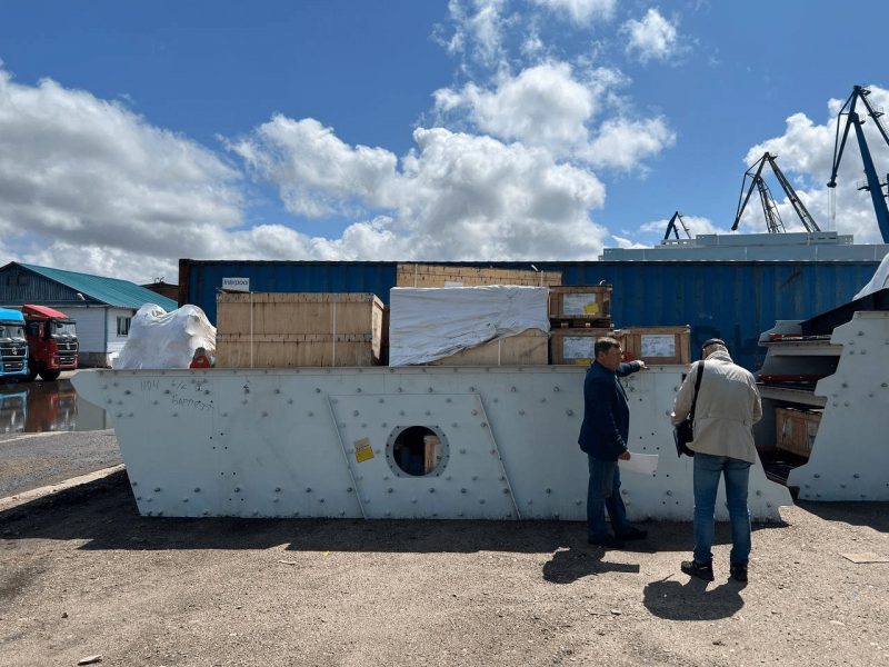 Выгрузка дробильно-сортировочного комплекса из торгового порта города Благовещенска для дальнейшего следования к нашим партнерам на «Химико-металлургический завод» в город Красноярск.