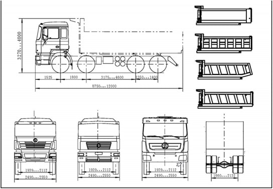 2. Тип кузова и разгрузки. Боковая, задняя или трёхсторонняя разгрузка в зависимости от условий площадки.